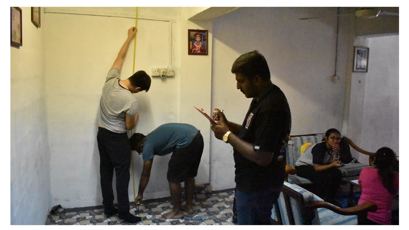 First Site Visit: We are given different time slots to select for our first visit to the site ever. This is to minimize noise effect caused to the residents over there. My team and I visited the site for the first time, and conducted a site analysis to understand our site better. The analysis was carried out efficiently as tasks were delegated clearly prior to the visit. The site was a single house unit in PPR Seri Berembang Flat occupied by a family of 7 ; 2 adults and 5 children. The owner of the house named Rajeswari is a mother of 5 children age ranged from 12 - 3 and her husband is a lorry driver who seldom be in the house due to his outstation work. As per the brief's task, we are required to create a study/learning space for the children and on our first visit of the house we discussed the potential space in the house to be the study/learning space for the children and we also measured the space to draft the idea for the learning space. To me, the site is relatively well-maintained. You get to see a void or a community sharing space at the center between two blocks. I also felt surprised by the good condition of the flat, especially when we are in a heavily modernized urban city.